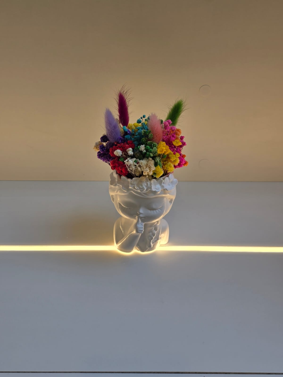 A delicate ceramic figure in the shape of a girl, beautifully adorned with natural dried flowers — a graceful and timeless piece for home decor or gifting.