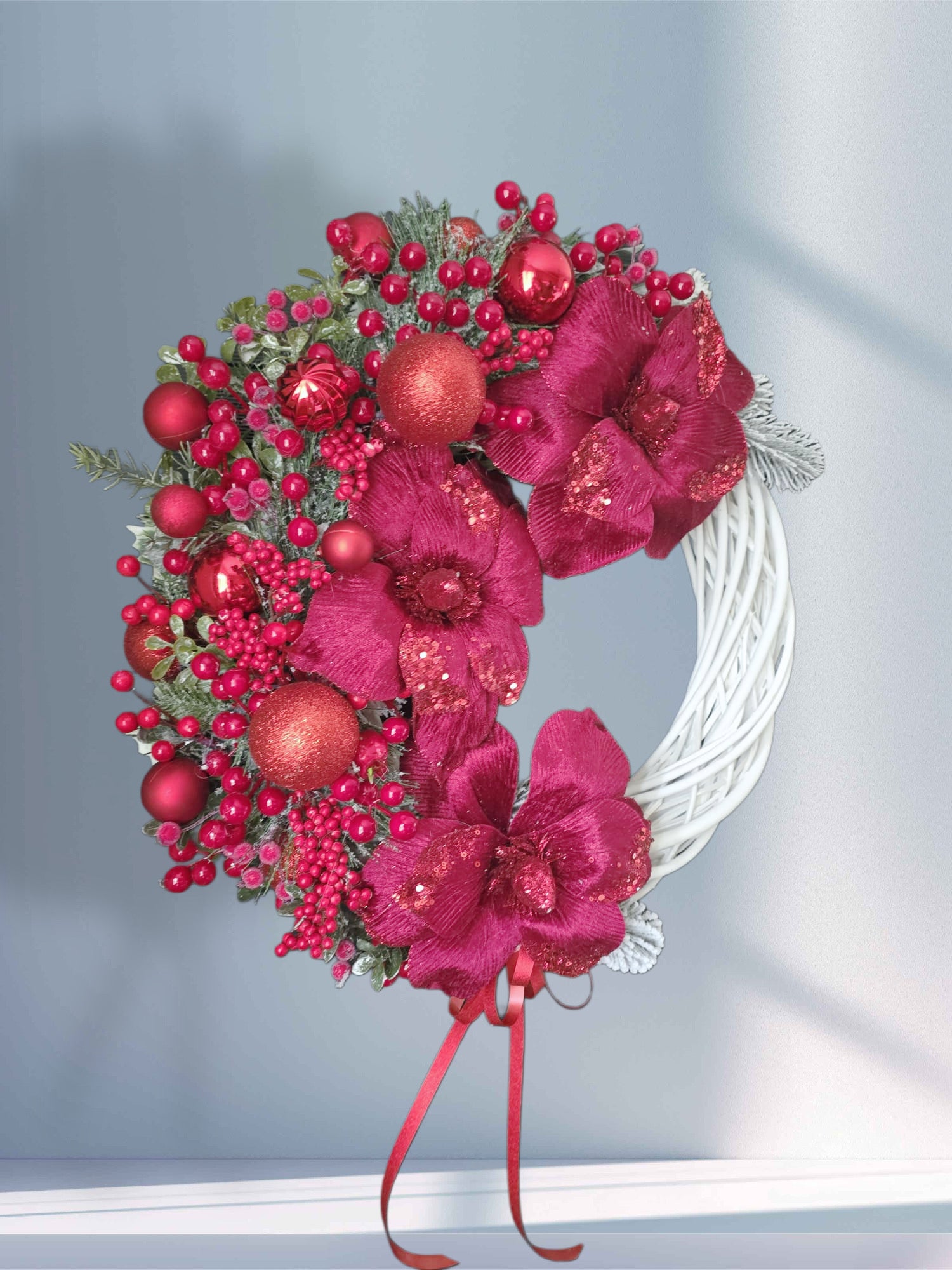 Add a festive touch to your home with this red rattan wreath. Handcrafted from rattan and accented with vibrant red elements such as berries, ribbon, or ornaments, it brings warmth and holiday cheer to any door, wall, or mantel. Its rustic yet elegant design makes it a perfect centerpiece for seasonal décor, creating a welcoming and festive atmosphere.
